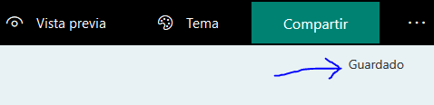Después de agregar todas la preguntas que queremos que nuestro formulario contenga podremos ir a la parte superior derecha de esta pantalla y observar que los cambios se han guardado, también podremos encontrar la opción de ver una vista previa del formulario como la opción de compartir.