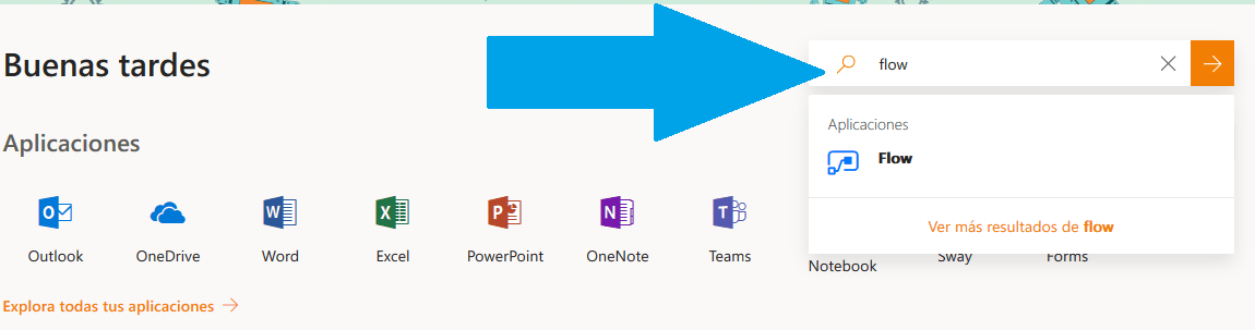 Una vez listo esto podremos cerrar esta ventana y regresar al listado de aplicaciones de office para buscar la opción de de Flow.