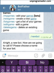 Lo primero que debemos hacer es crear nuestro bots con el comando/newbot